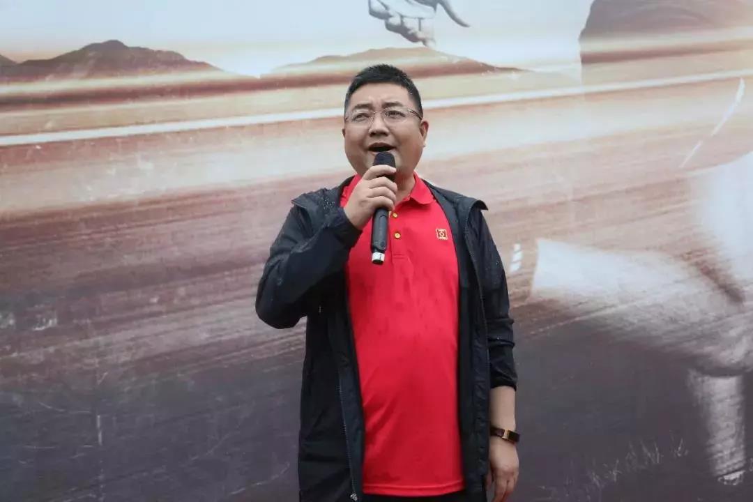 集團公司黨委副書記楊勝偉為參加活動的職工加油鼓勁